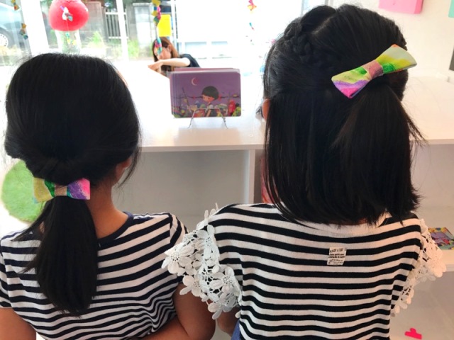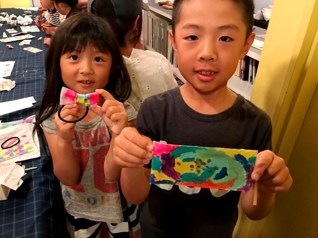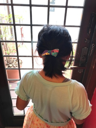 最後は、頭や腕や胸や鞄に出来上がったリボンやお花をつけた子どもたちでパシャリ。