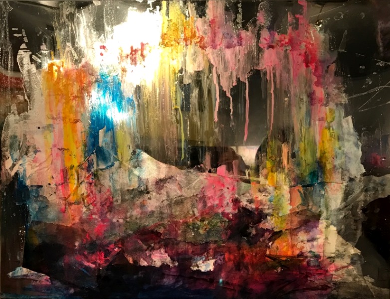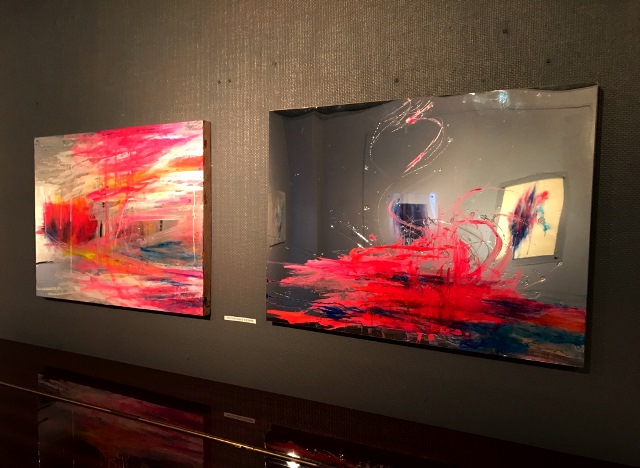 彼女の作品の特徴のひとつは、ミラーシートをパネルに重ねているという点。