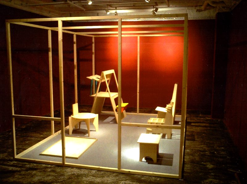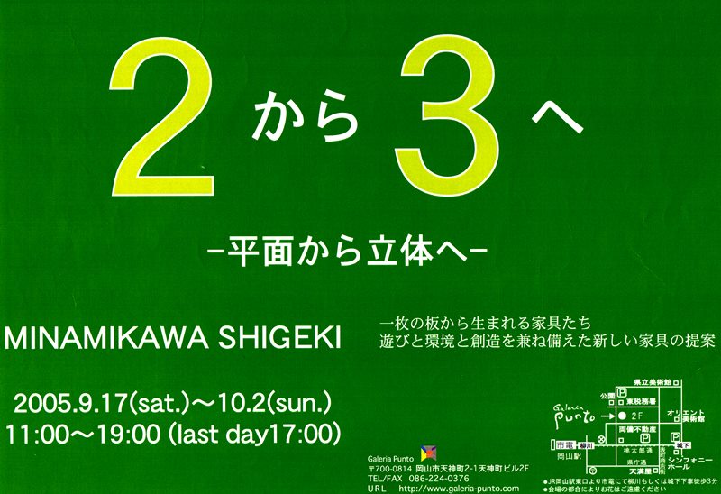 タイトル「2から3へ」が示す通り、平面から立体に変化する家具を展開します。