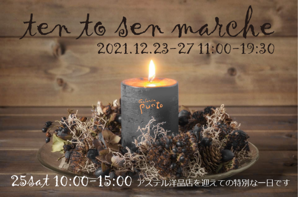 2021.12.15galeria-puntoEvent0 comments 「ten to sen marche」 2021年12月23日(木)~12月27日(月)加古川 11:00~19:30(最終日~16:00) ※12/25(土)10:00~15:00は、アステル洋品店を迎えての特別な一日です。 「焼き物・土器・野焼き」阿曽藍人 「辟易(へきえき)」Ramo galeria-punto Leave a comment コメントをキャンセルメールアドレスが公開されることはありません。 * が付いている欄は必須項目です Δ