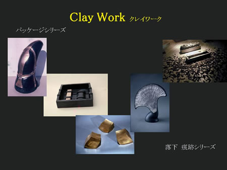 「焼き物」とよく言いますが、私はスライドにある「クレイワーク」という言い方がふさわしいと考えています。焼き物=器、のようなイメージから離れたかった。土による造形=クレイワークということだと考えています。