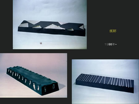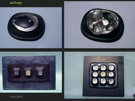 つくり手が一番こわいのは、アイデアがなくなる時です。それは作家がなくなることを意味しています。左側の痕跡シリーズはそんな時にできたもので、パッケージシリーズを応用してつくりました。