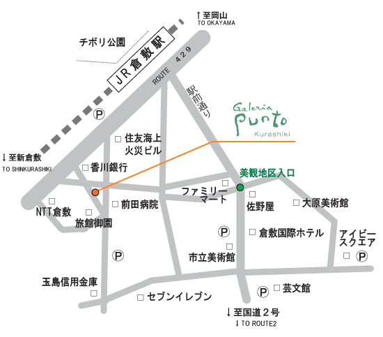 ○ Galeria Punto倉敷へはJR倉敷駅から徒歩8分、美観地区入り口より徒歩10分