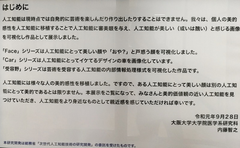 またAIが視覚芸術を生み出す過程でAI内部で生じる階層的なイメージも芸術作品として展示いたします。