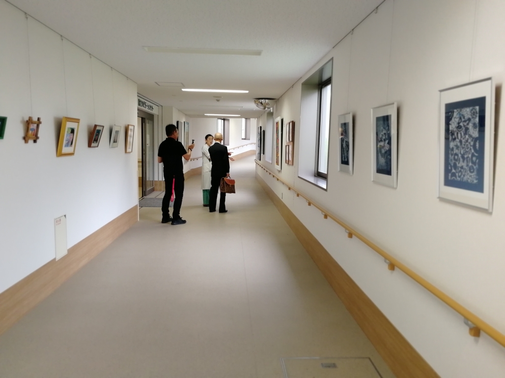 長い廊下にはズラッと患者さんたちの作品が展示されている。