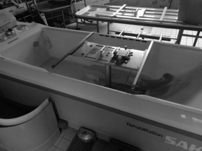車椅子に座れる患者さん、起きられない患者さんによってお風呂の形態も異なる。