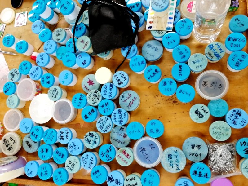 私も愛用している軟膏などを入れる容器に顔料が分けられている。