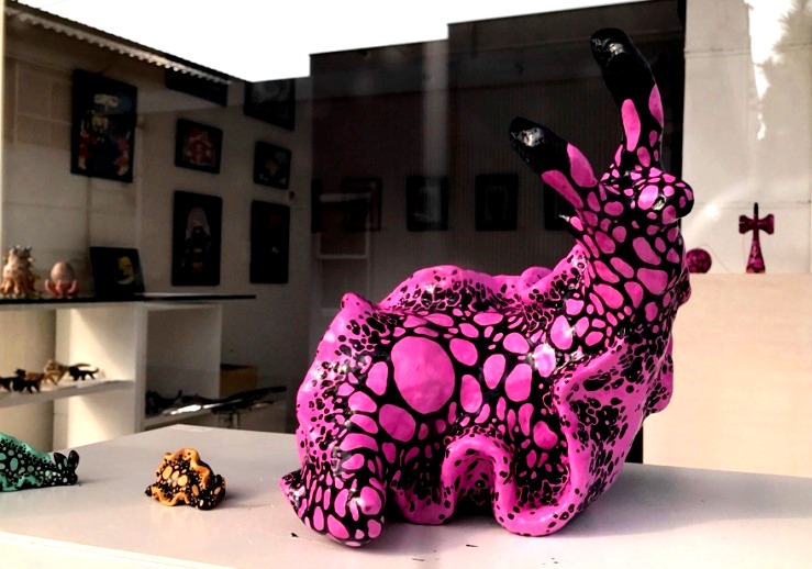 昨年、画廊を訪ねてきた女の子が持っていたのがピンクの小さなアメフラシ。