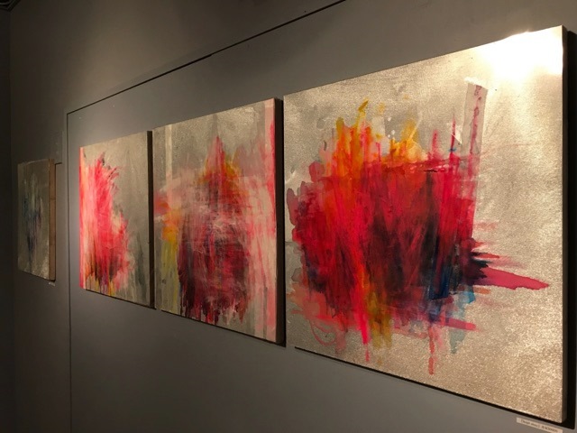 2017.10.09galeria-puntoblog 2017 松尾夕姫さんの「& unknown」。 元々はホワイトキューブを想定して描かれたようですが、 彼女の作品はグレーの壁によく合います。 絵具の筆遣いは決して静かなものではないのですが どういう訳か、音がないようにも感じます。 重なりを意識した作品のほとんどは、画面に直接描くことはせず、 ミラーシートやオーガンジーを使用。 中でも白を基調にした表現は、やさしい光沢をまとっているようで 作家の意図する重なりが上手く合致しているのではないでしょうか。 不実bone 「spectrum☆スペクトル」 galeria-punto
