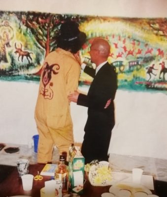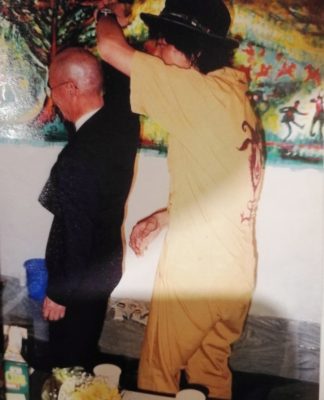 私は初日のライブペイントに伺い、コージさんと少しお話した後の写真。