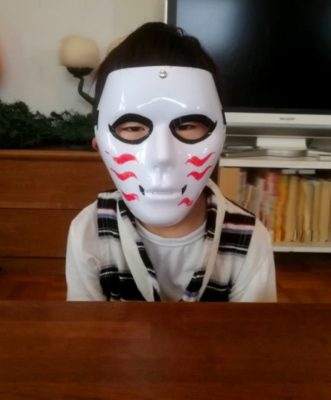 咳き込んでいたので、気をつかってマスクの上から仮面のフルマスクを付けていました。