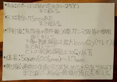 作品と一緒にこんなクマムシの詳細も持ってきてくれました、意気込みを感じます。
