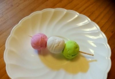 実際に作った粘土の三色だんごがこちら。