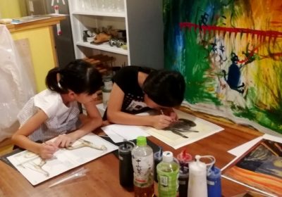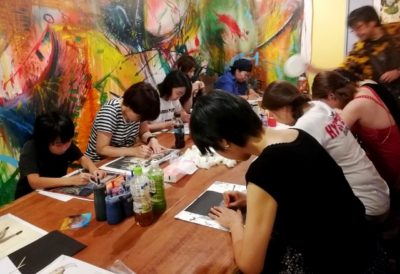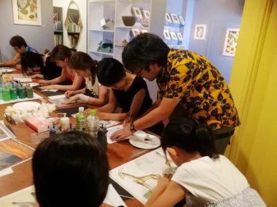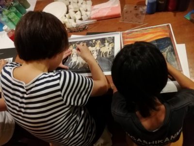 2018.08.05galeria-puntoblog2018 クリアグラフワークショップ、2日目。 今日は綿引さんの作品とワークショップのために、 京都から岡山から神戸からと遠方からも沢山の方が来てくださいました。 名画などのモチーフを活用することで模写ではないオリジナルを見つけていく。 行き先を決めない旅のように手を動かす作業は、 絵が苦手という人でも興味深く取り組めるのではないかと思う。 感覚と先を読む力をフルに使いながら手探りで進めた先の 想像と違った仕上がりが、また面白い。 全ては紹介しきれませんが、こんな作品できました! クリアグラフ ワークショップ イリュージョン galeria-punto