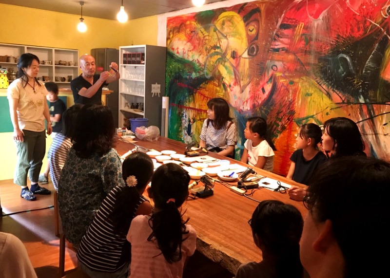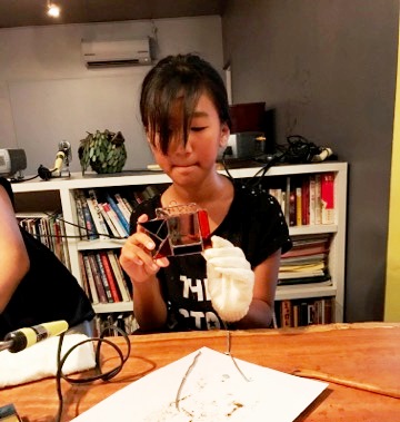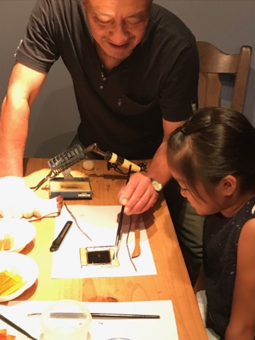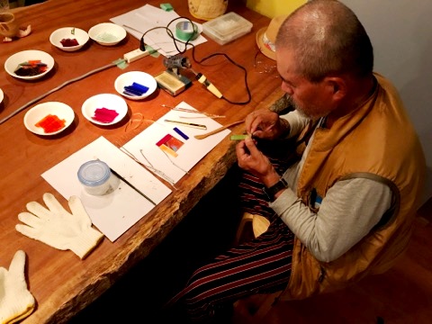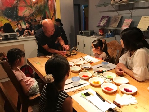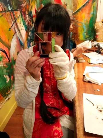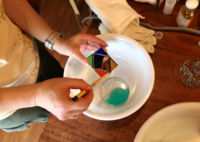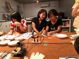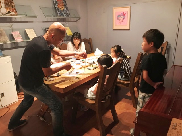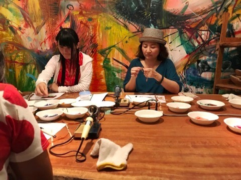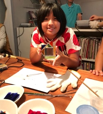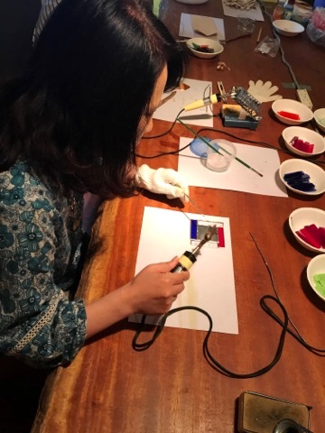 2017.08.07galeria-puntoblog 2017 ワークショップ2日目。 この日はいつもより早く開廊し、朝からにぎやかに始まりました。 ステンドグラスの始まりのお話を聞くと、 長い時間を経て私たちがワークショップとして体験できる流れを知ることができます。 好きなガラスを組合わせ ガラスに銅テープを巻いて 溶かしたハンダで接着していく。 最後に薬で酸化させ磨き上げることで、アンティークなステンドグラスが出来上がる。 大人の参加者も多く、皆さん満足の出来栄え〇 ご希望があれば、Puntoにて体験できます。 ワークショップ1日目 カレイドスコープ ライブ galeria-punto