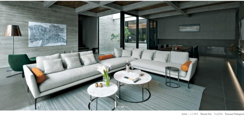 例えばこの画像は、雑誌「モダンリビング」に掲載されているもので、壁面にある作品が入江さん作である。