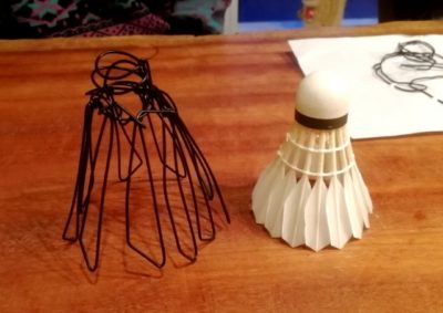 バドミントンのシャトルも、中根さんがこんな風にワイヤーデッサン。