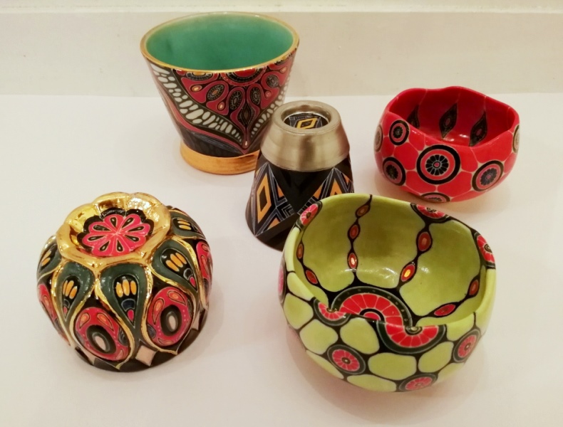 彼女は元々オリエンタルな雰囲気のこんな模様を施した陶を制作している。
