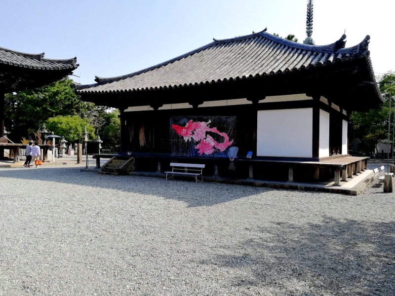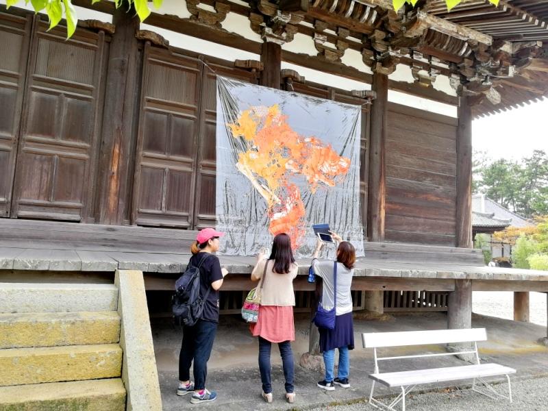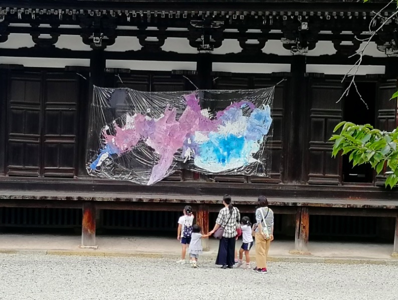 本堂及常行堂の周りに、今井杏奈さんの平面作品。