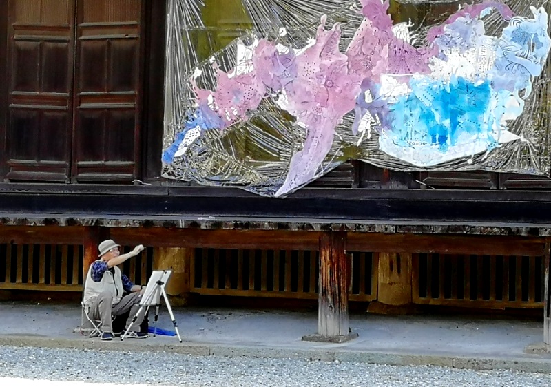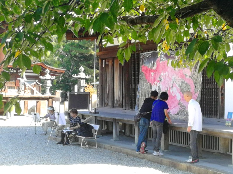この日は、今井さんの作品をバックに、境内で絵を描く人をたくさん見つけた。