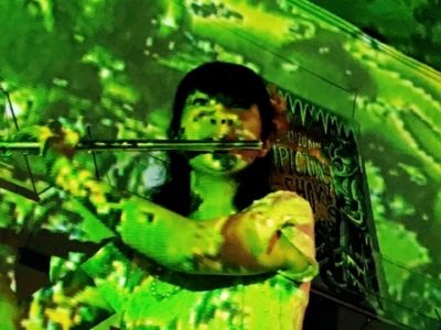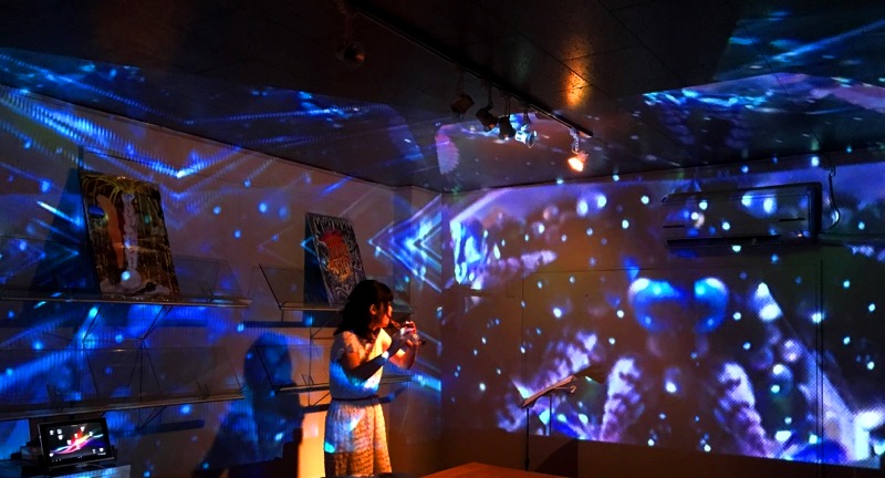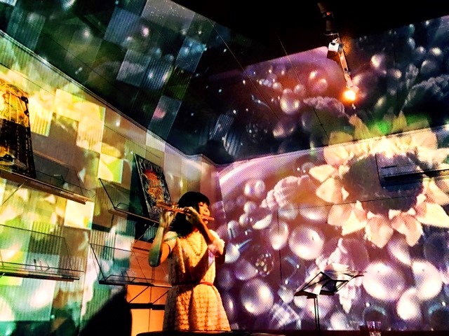 2017.07.25galeria-puntoblog 2017 明日からの「融合・ゼロからの構築」を前に、 遠方からフルート奏者のトンちゃんこと山野智子さんが駆けつけてくださいました。 まさにプロフェッショナルの彼女は、会う度にパワーをもらえる存在。 その音色の素晴らしさは当然ながら、人間的魅力も計り知れない。 吉田 真の万華鏡映像と共に、何とも贅沢な時間を過ごしました。 初日前夜からモチベーション急上昇。 お客様からは、ミントブルー×ショッキングピンクの手作りケーキやフルーツも頂き。。 明日からの吉田 真の万華鏡と映像を、どうぞお楽しみください。 吉田 真 搬入 吉田 真のテレイドスコープ galeria-punto