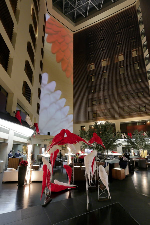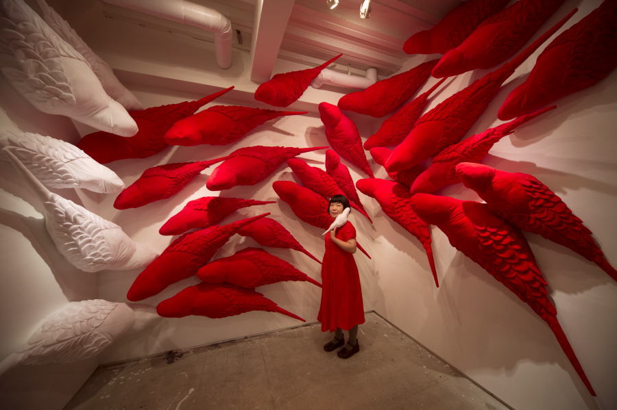作家が全て羽一枚から作っており、写真から想像する以上に繊細な作りである。