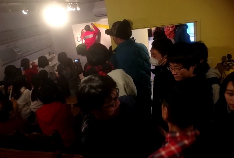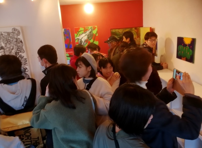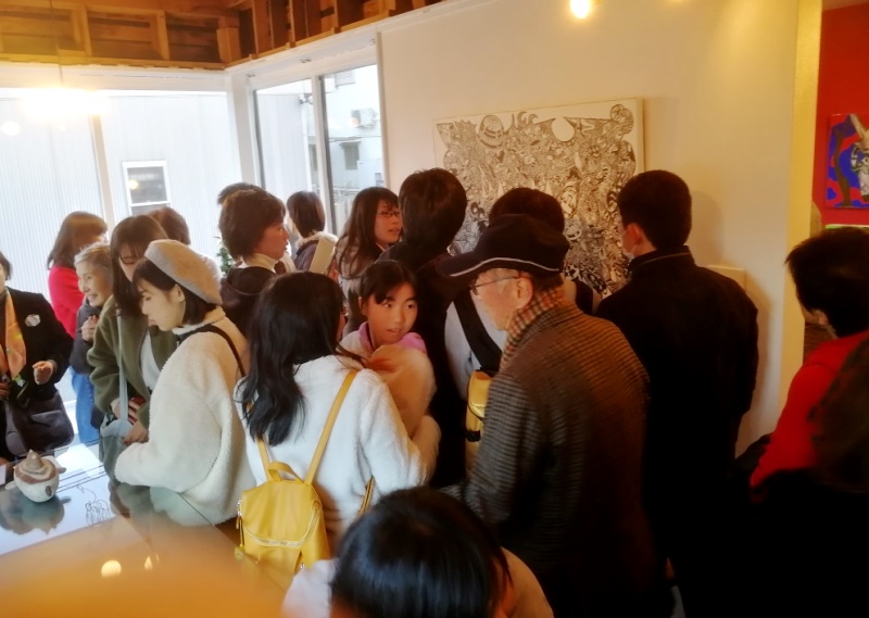 開廊時間の16:00を迎えた頃には、画廊内は満員電車状態。