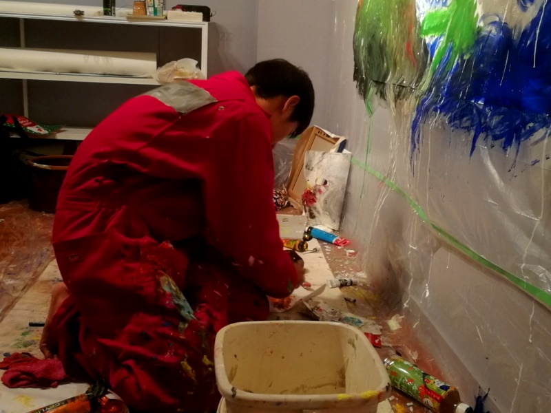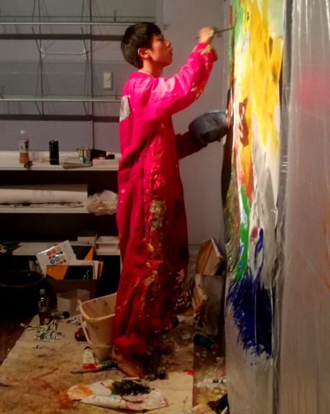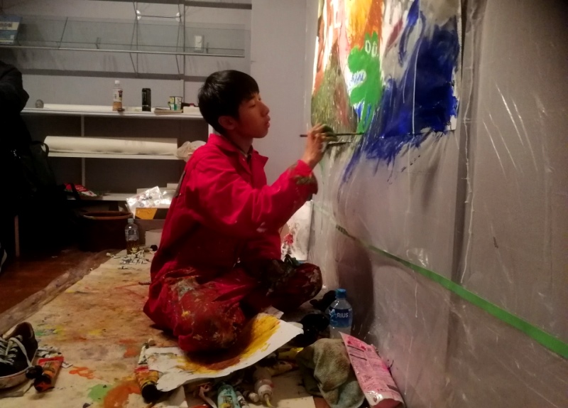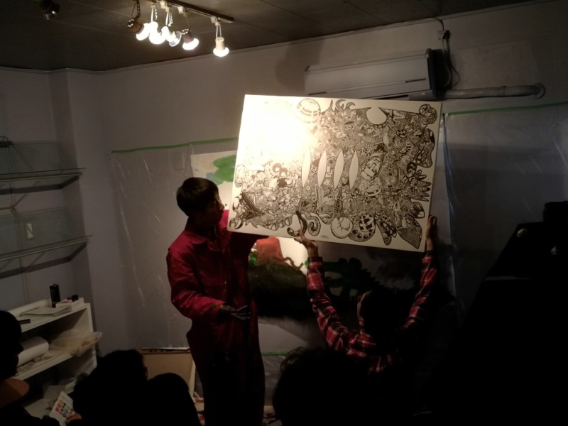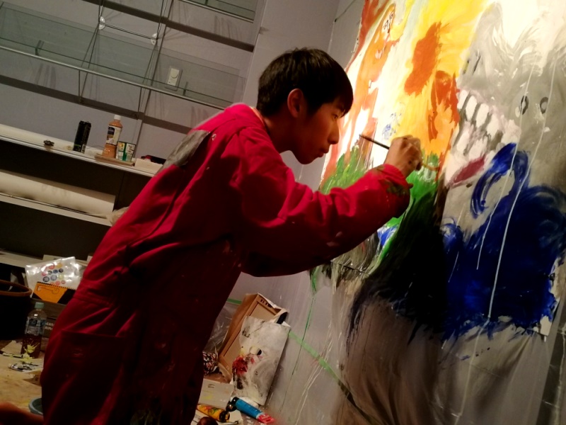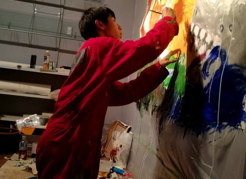 彼は普通の高校生ですが、画廊でのライブペイントを実現させた熱意と実践力は見習うべき姿でした。