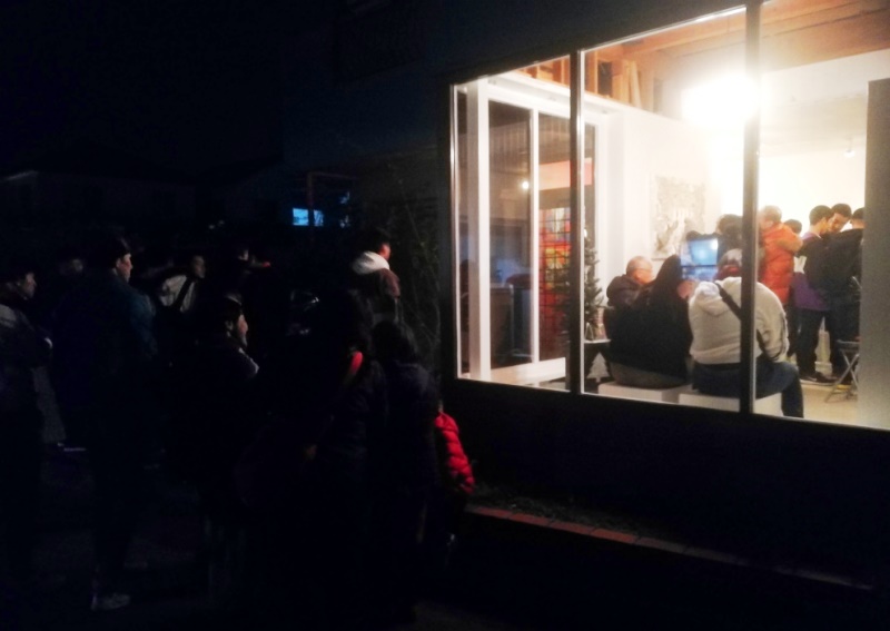 16:00からのスタートを前に画廊前には にわかに人が集まってきました。