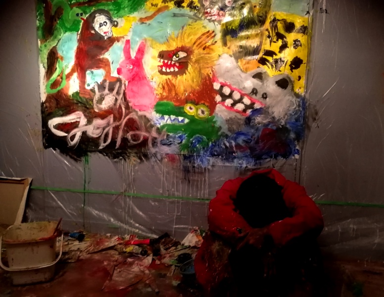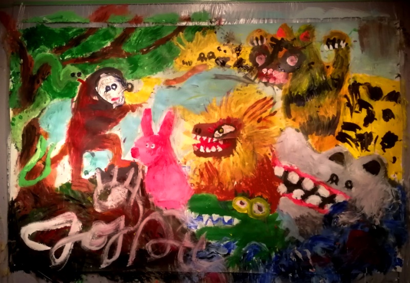 途中からは筆を投げ捨て両手で大きな画面を短時間でここまで持っていったアラタ君、よく頑張った!
