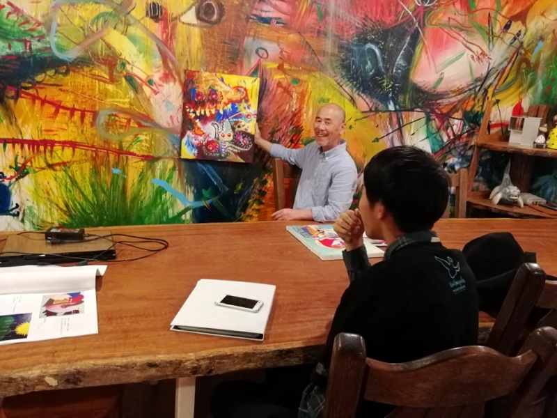 ギャラリーに並ぶ作品を前に、さぞ緊張感と高揚感でいっぱいであろう姿を見ていただきましょう~。