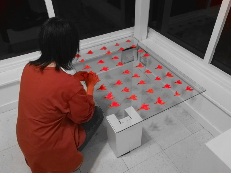 沼田さんの作品には、全てに”とりっこ”と呼ばれる赤い鳥が登場します。