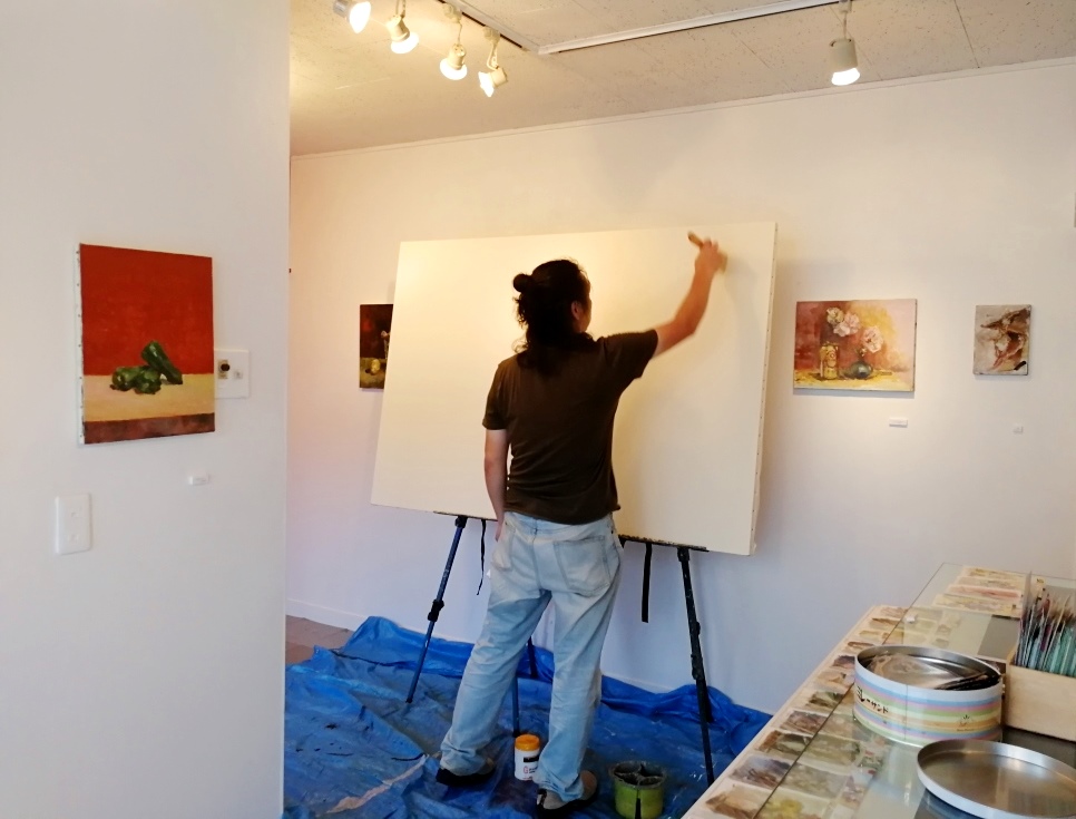 本日 現地調達した100号に下塗りを開始、続きは明後日8日(土)のライブで見ることが可能。