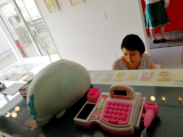 オモチャのレジまで持込み、ギャラリーごっこが始まる。