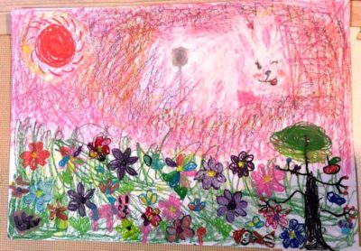5才の絵。クレヨンをまぜまぜにハマっていた頃。
