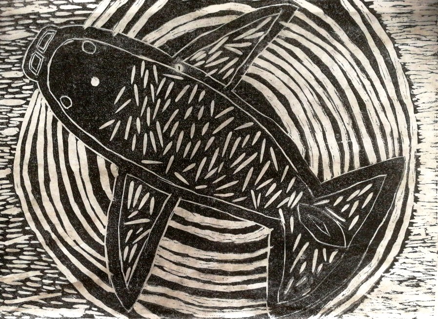 ”川の主”をテーマに作った版画作品です。