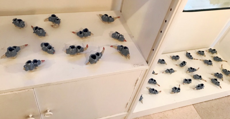 2017.10.08galeria-puntoblog 2017 What Dottokage? ASADAさんのドットカゲ、ご存知の方も多いのではないでしょうか。 Puntoでも人気の手のひらサイズのドットカゲ、 今展では、なんとSサイズ・SSサイズもお目見えしました!! 是非見に来てください。 他にも、ヒトデをはじめとする海の生き物と思われる生物がいろいろ。 こちらは初お目見え。 フジツボと骨(bone)を組合わせた新種、不実bone。 debacle or sublimation オーガンジー galeria-punto