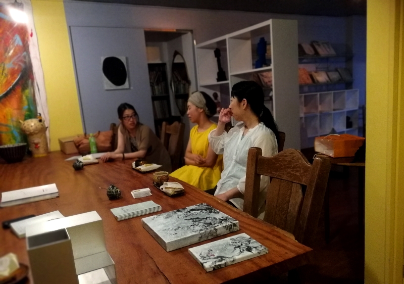 京都から川越里美、福岡から猪立山三鈴の4名でつなぐ展。