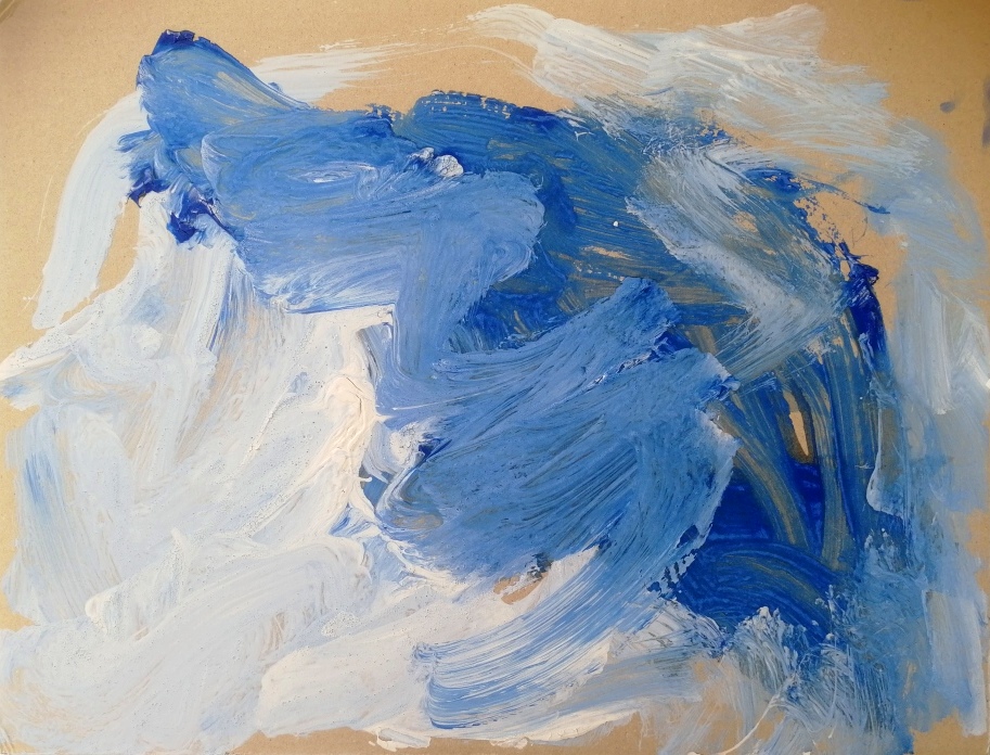 ダンボールに絵の具を乗せて、好きなようにやらせた作品です。