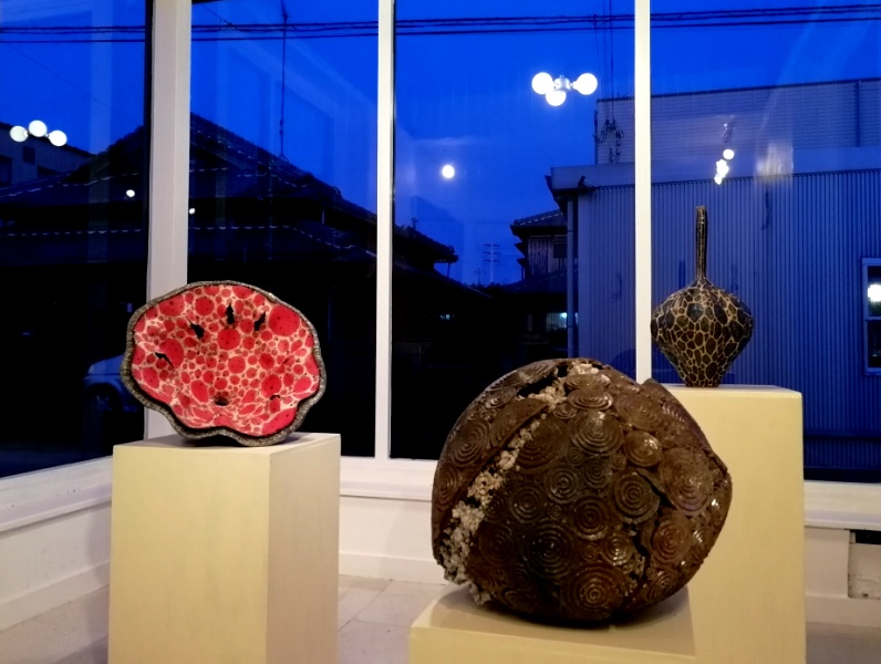 余談ですが、壁面に飾っていた椎名さんの作品と馬川さんの器が驚くほど合っていた。