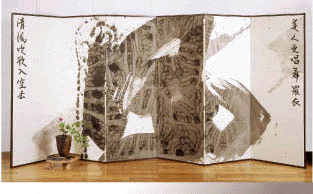 伝統的な書道表現だけにとどまらず、音楽家、舞踏家、詩人等他分野との共演による”書”の可能性や舞台芸術のあり方を探求する。こうした活動は海外からも
