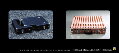 仕事を続ける事に、 何の躇いも感じなかった。 しかし、この数年その事への疑念を払拭できないでいる。 かつての作品と、今創出した表現の対比を提示することで、その「変様」を見定め、 素材が私にとって何であるかを確認してみたいのだが。 |